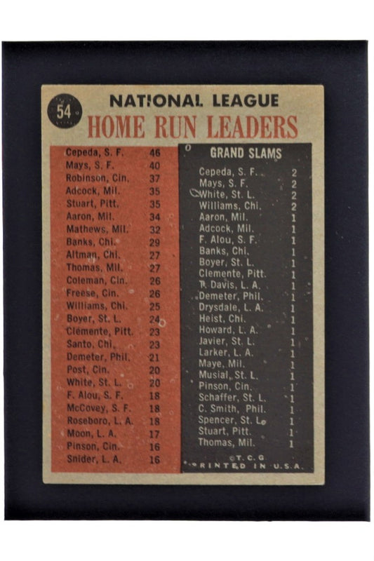 1962 Topps #54 NL Home Run Leaders - Orlando Cepeda / Willie Mays / Frank Robinson