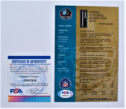 Lenny Moore Signed Hall of Fame Signature Series Card (PSA)